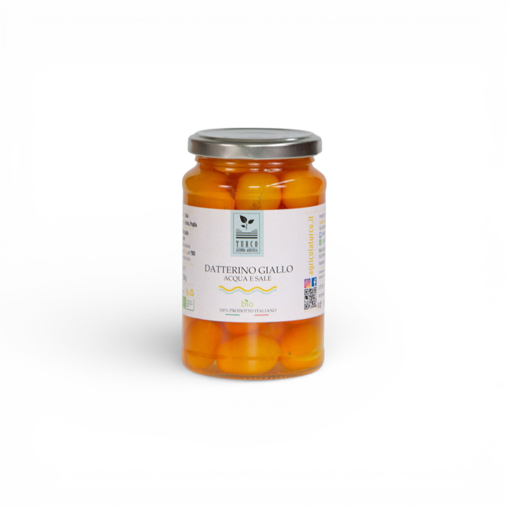 Conservato in acqua e sale per preservare tutta la freschezza e la fragranza, il nostro pomodoro datterino giallo sembra appena raccolto. Un prodotto semplice e genuino, pensato per portare tutto l’anno il vero sapore del pomodoro fresco direttamente in tavola.